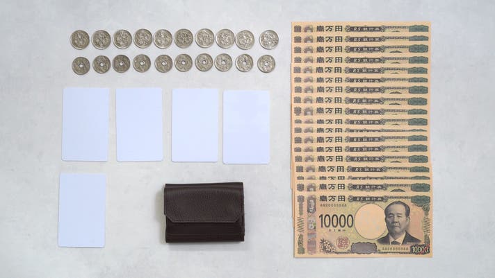 カード:6枚(運転免許証、保険証、クレカ、キャッシュカード、Suica など)