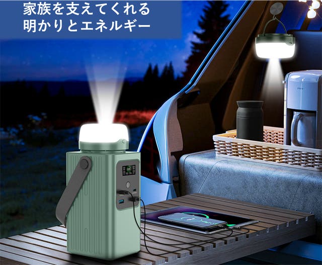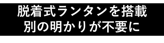 - 脱着式ランタン搭載。キャンプや車中泊、もしもの災害時など幅広いシーンで使えます。