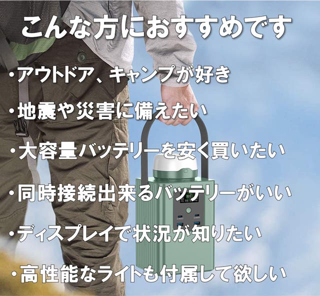 キャンプ、旅行に便利なアウトドアバッテリーですが、災害非常時に活躍する大容量バッテリーです。