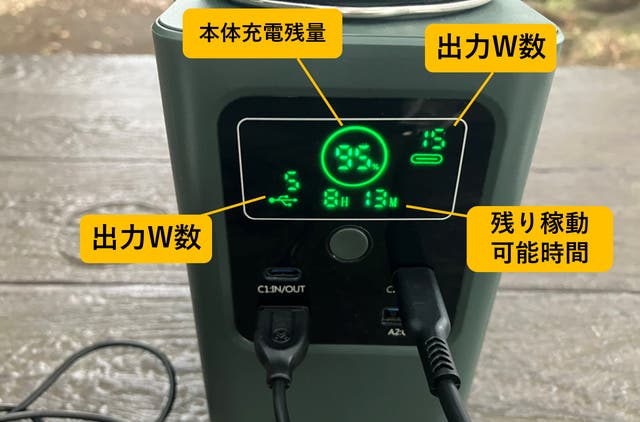 4つの接続口に対してそれぞれ何Wで出力しているのかディスプレイで確認できます。