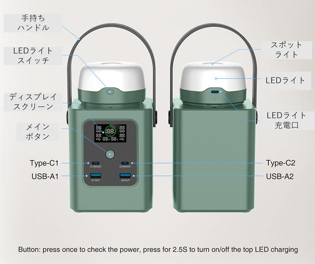 本体のバッテリーを使用しランタンの充電も出来ます。