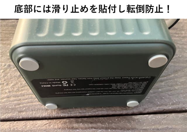 転倒防止の滑り止めが付いており、ケーブルを無理に引き抜こうとしても本体自体は倒れづらい構造です。