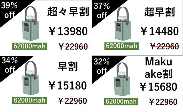 【Makuake割】62000mAhタイプ アウトドア用USBチャージャー