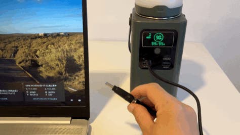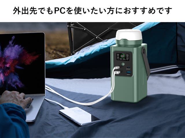 - アウトドアバッテリーには珍しく、PDで100W、QCで18Wの高速充電に対応。PCの充電も可能