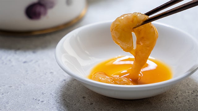 戦前に贅沢品の指定を受け製造禁止となった幻の品。天たつ当主へ代々受け継がれた製法を2011年に復刻させた他店にはない一品。北海道産のバフンウニを干し上げ、絶妙なほっくりとした触感に仕上げました。ほのかな塩気と濃い甘味は日本酒、洋酒問わず酒の肴としてお楽しみいただけます。