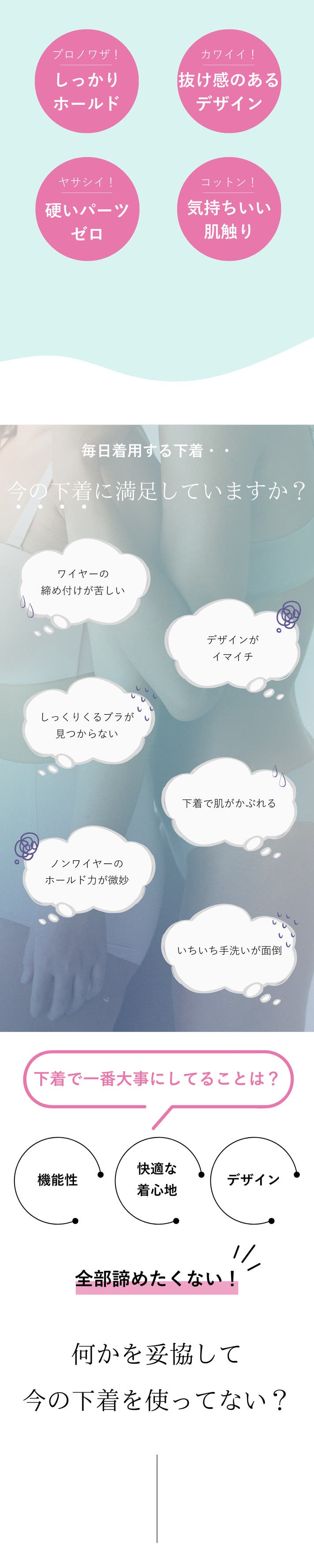 24時間身に着けていてもストレスフリーでいてほしい、下着のせいでおしゃれを諦めてほしくない、そして、同じ世代の女性がポジティブに明るく、やりたいことに夢中になってほしい。