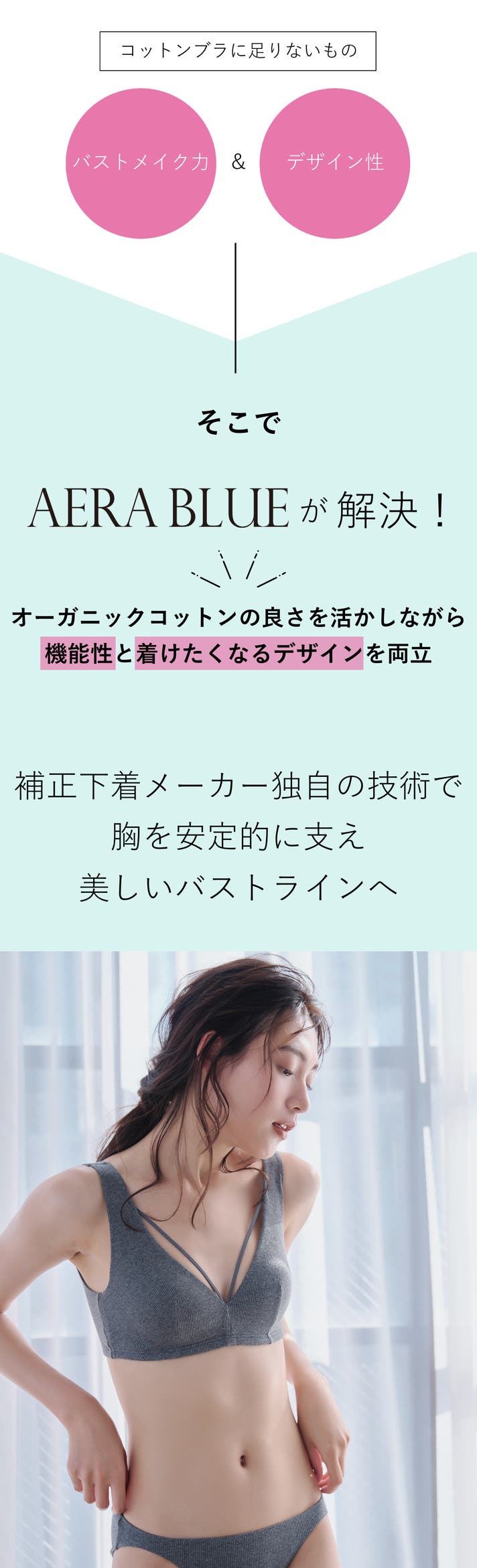 心・身体・ライフスタイル、どの点においてもAERA BLUEは障壁を取り除き、寄り添える存在でありたいと願っています。