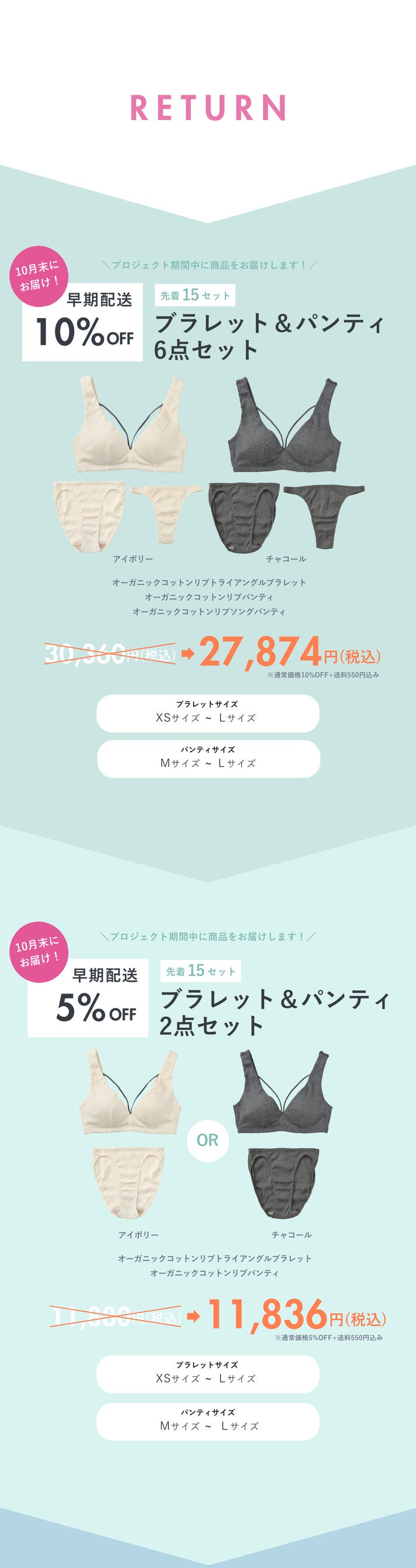 - 毎日着用する下着のストレスをゼロに!上下セットでお得に、最短10月末お届け!