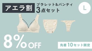 【アエラ割8%OFF】ブラレットLサイズ&パンティ アイボリー3点セット