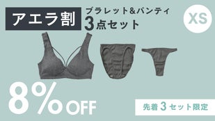 【アエラ割8%OFF】ブラレットXSサイズ&パンティ チャコール3点セット