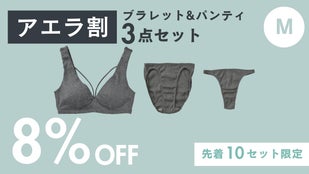 【アエラ割8%OFF】ブラレットMサイズ&パンティ チャコール3点セット