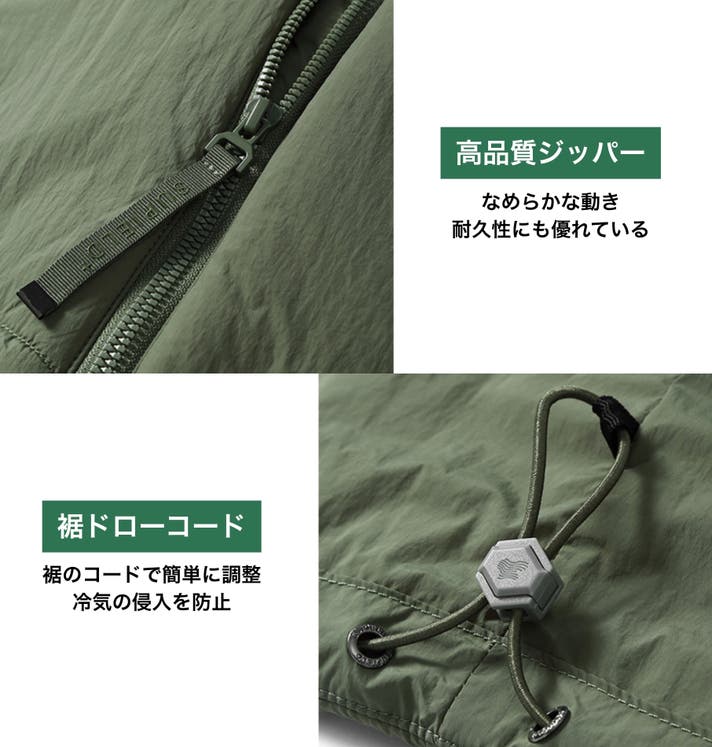エアロゲル中綿は動物繊維を使わず細菌の繁殖を抑え、タックダウン特有の臭いもないです。さらに吸湿率がダウンのわずか1/17に過ぎず、湿気が多い環境下でも驚くほど暖かく快適です!