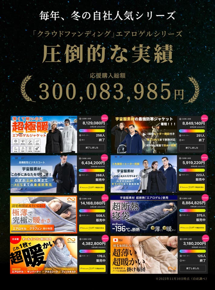 - 累計販売3億円突破!宇宙服素材を使用した人気シリーズから初のエアロゲルベスト登場