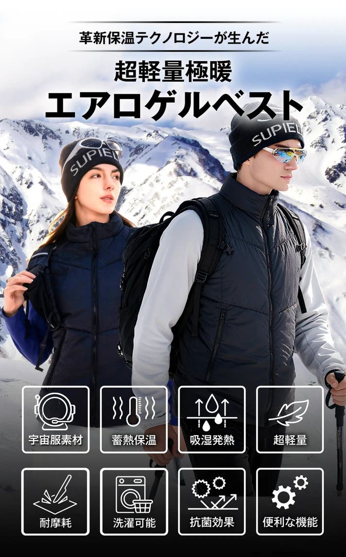 シリーズ累計販売額3億円を突破した「エアロゲルシリーズ」から、初のエアロゲルベストが登場!NASAも採用する宇宙服素材「エアロゲル」を採用した先端防寒ベスト――それが「エアベスト V1」です。