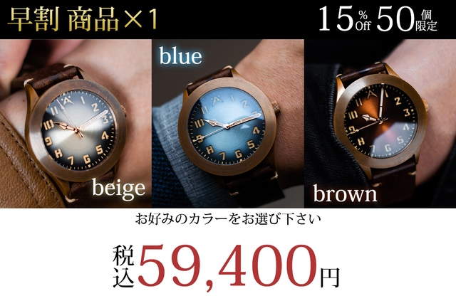 文字盤はヴィンテージブルー、ヴィンテージブラウン、ヴィンテージベージュから
