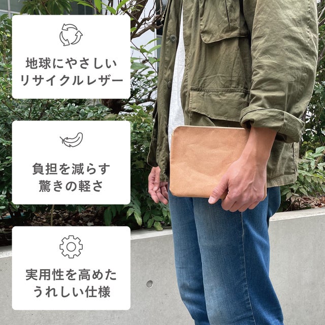 そんなリサイクルレザーを使用した薄型ポーチです。
