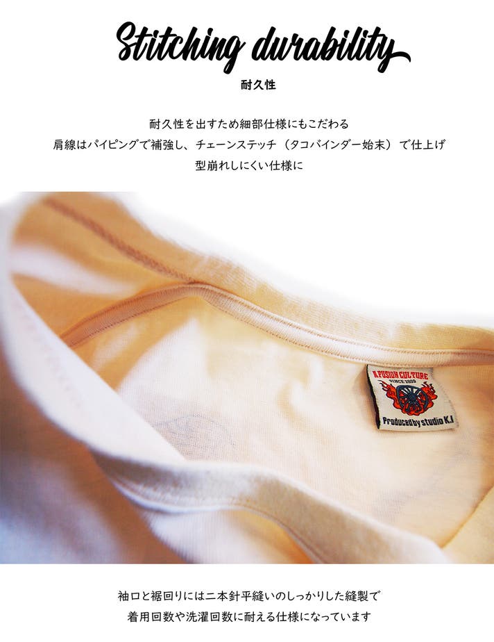 A fusion cultureの、基本半袖をTAパターン 長袖をLTAパターンとして製品下札にも表記しています。今後展開により増えていく際、同じシルエットを選べるようにとの想いを込めています。