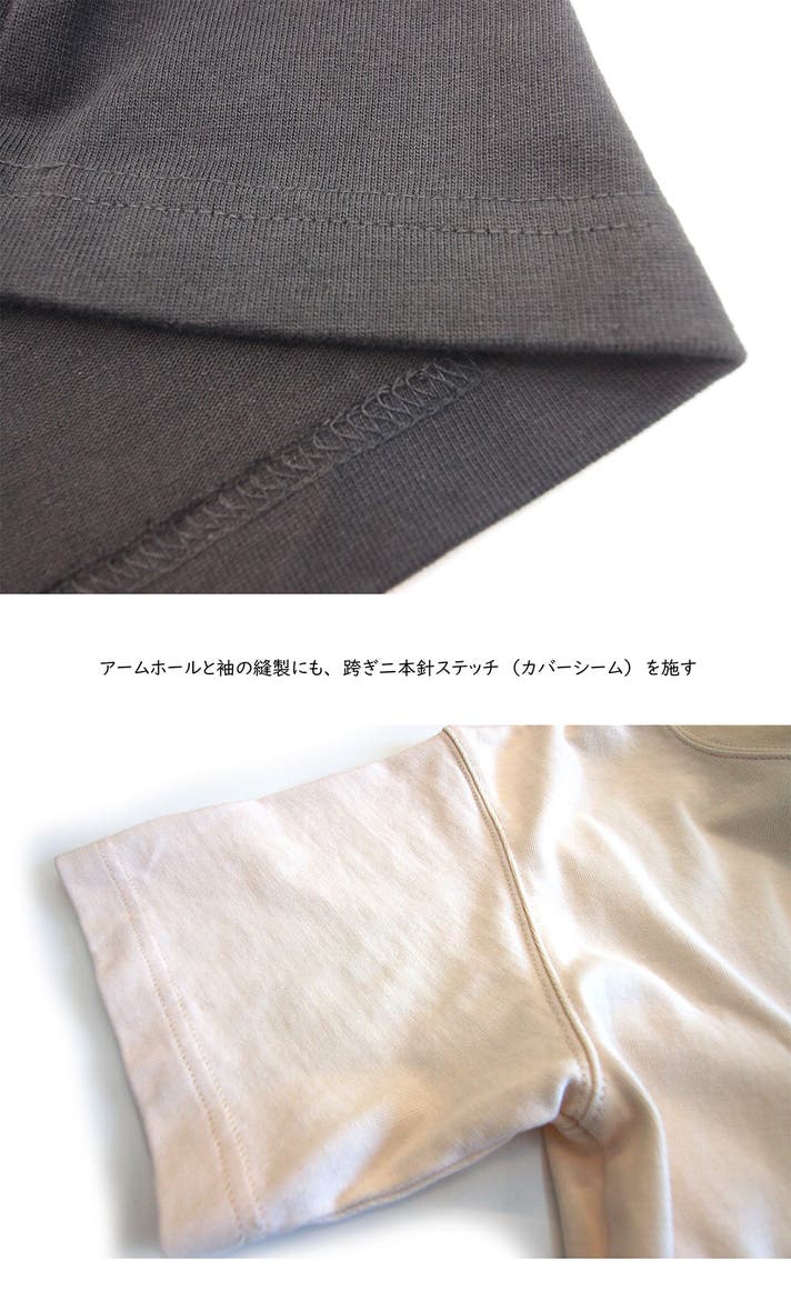 袖口と裾周りには二本針平縫いのしっかりとした縫製で着用回数や洗濯にもタフで、長く使うことができる仕様になっています。