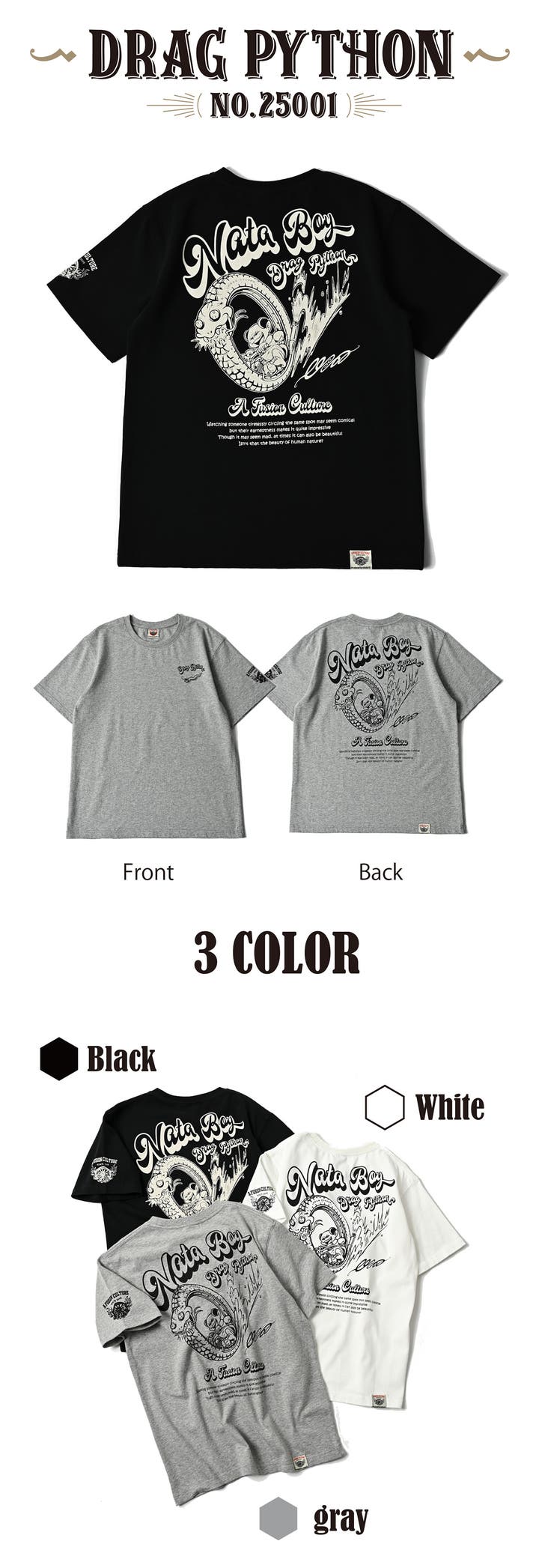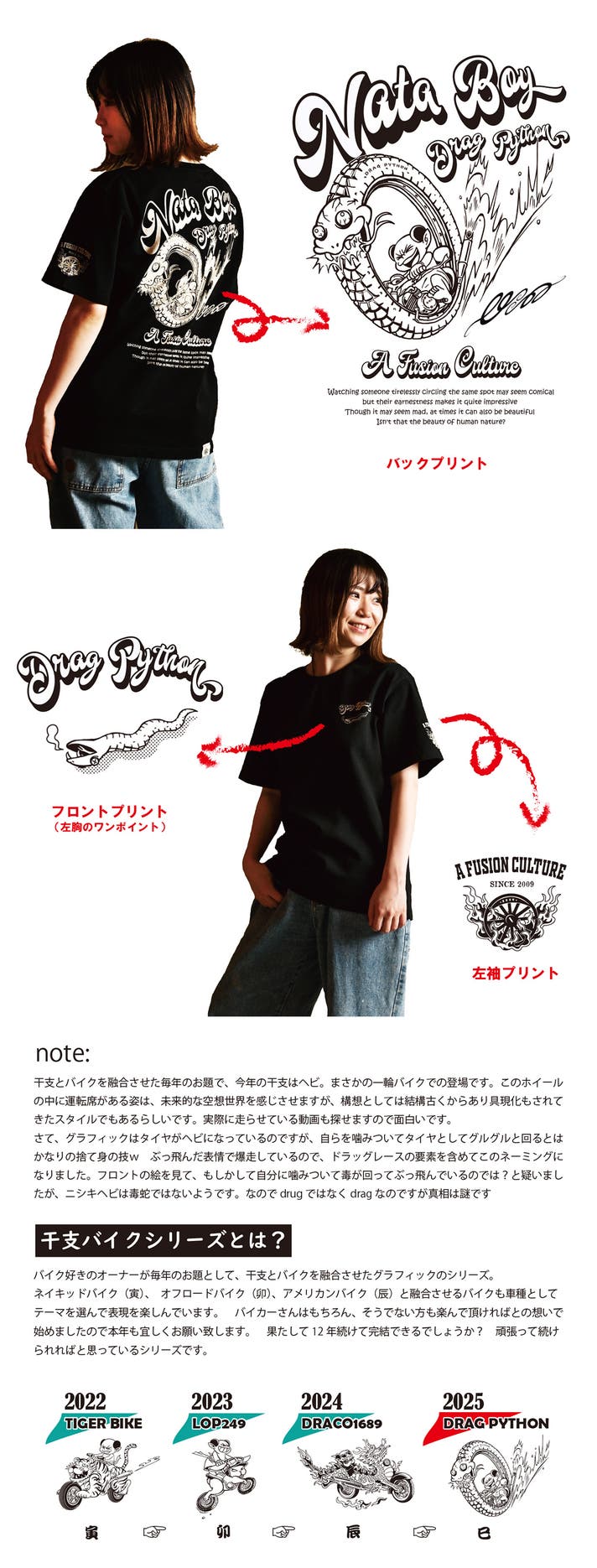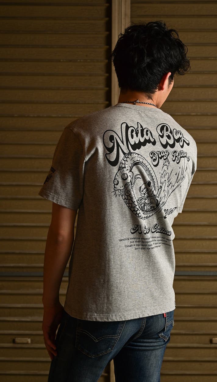 ※これはTシャツのグラフィックではありませんが、アートワークの一環として描かれた漫画。2枚目は今回のDRAG PYTHONの漫画です。※他の漫画も弊社ストアページ掲載中