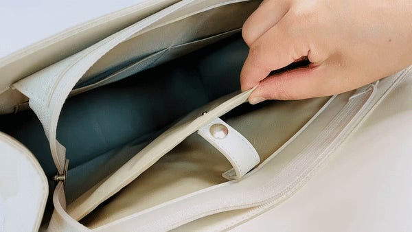 忙しい日常でも安心して使用できるロック機能!激しく揺らしても開くことのないボタン式金属クローザーで1度保護して、内側にはファスナーで内部荷物を保護します。ノートパソコンポケットとバッグ全体を一度に固定させるので内側の荷物を安全に保護することができます。