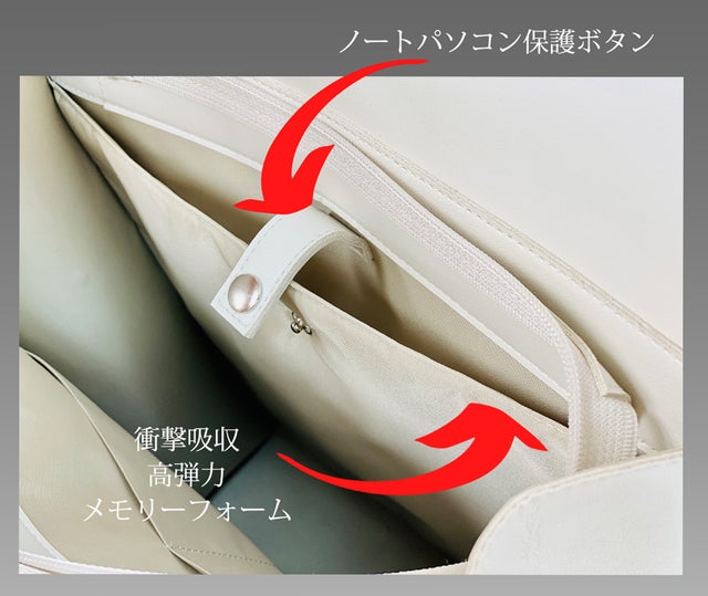 ノートパソコンを保護するための水の強い生地を使用しました。水気を弾く生地が雨の日も安心して外出できます。