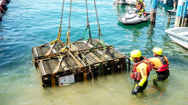 例年イゼオ湖から熟成されたワインを引き上げる日は街全体の大きなお祭りのようです。60ヶ月熟成されたワインを専門ダイバーと大きなクレーン車で引き上げ、その引き上げたばかりのワインの試飲をします。