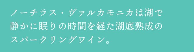 湖底熟成は、名の通り湖の底で熟成させた、珍しいスパークリングワインです。湖の波の揺れは穏やかでまるでゆりかご。