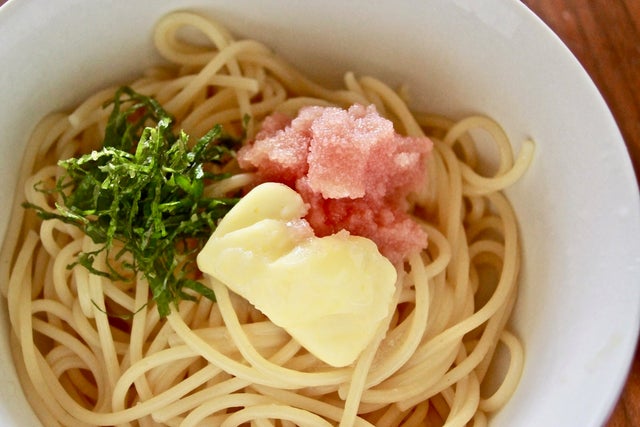 たらこパスタには有塩バターをひとかけ。そそる香りが広がります!