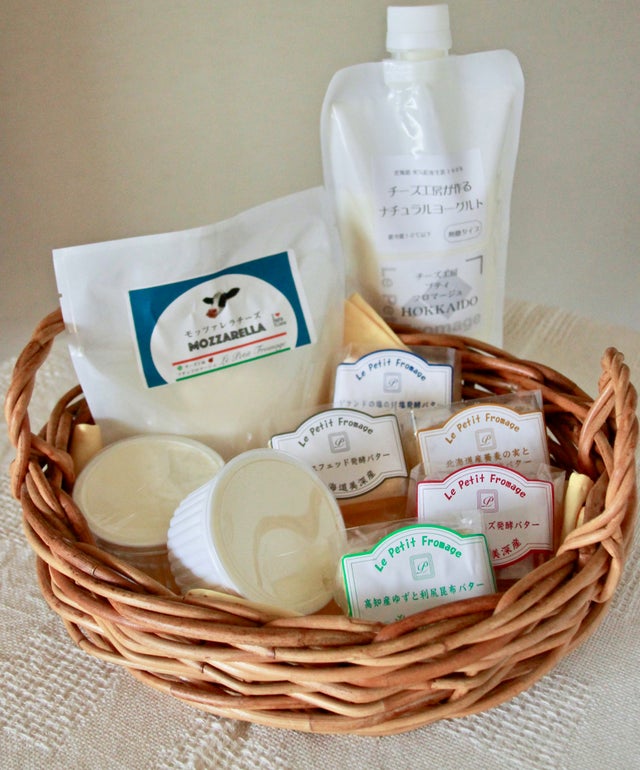 美深町産グラスフェッドミルク100%の乳製品を、たっぷり盛り込んだセットです。内容は発酵バター5種、お菓子やパン作りに便利なグラスフェッド無塩発酵バター、フレッシュチーズ2種、カチョカバロチーズ、無糖ヨーグルトです。