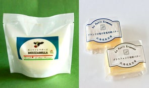 美深町産グラスフェッドミルク100%の、発酵バターとフレッシュモッツァレラチーズのセットです。製品の色は時期により違います。季節のミルクの自然な色と味をお楽しみください。