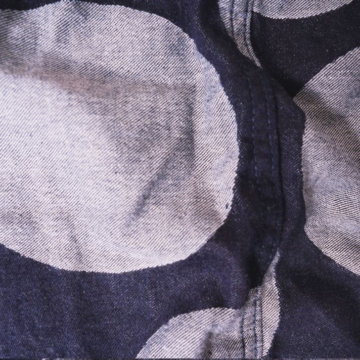 複雑なジャカード織りをデニムで表現できる技術は、まさに職人技の結晶。