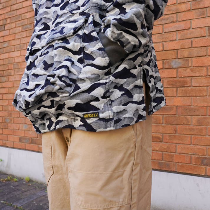 プリントだとミリタリー感が強くなる迷彩柄もジャガード織りにする事で凹凸のある高級感のある大人っぽい印象に。