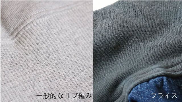 ▲フライスというのは一般的なスウェットの裾や袖にある「リブ編み」とは違い