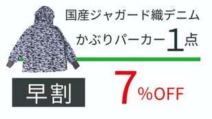 【早割7%OFF】国産ジャガード織デニム かぶりパーカー 1点