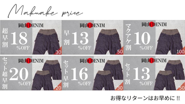 マクアケ割10%OFF 岡山産大人のリラックスストレッチデニム 1点