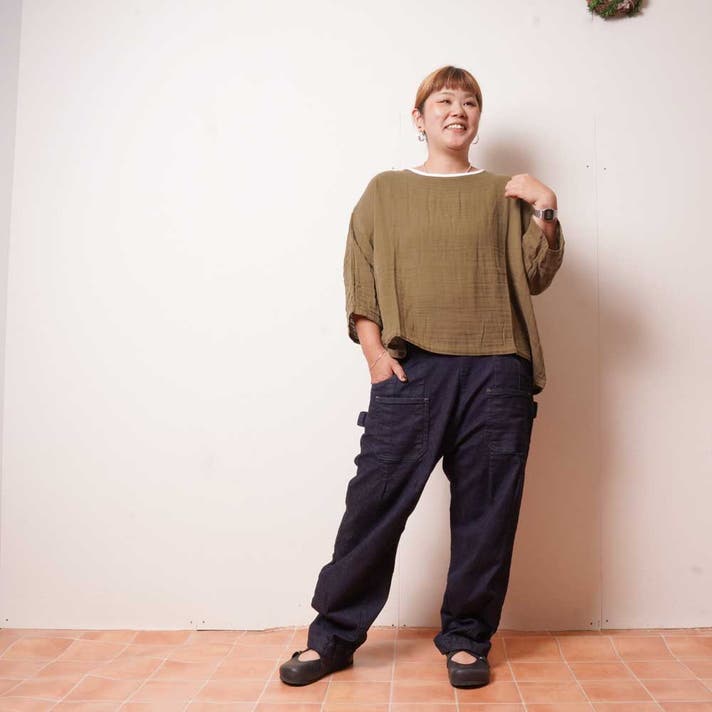 普段は、Sサイズが多いですが、このパンツは、わざっとダボっとカジュアルめに着るのも可愛いので、Mサイズをロールアップしてゆるっと履くのも可愛いです。