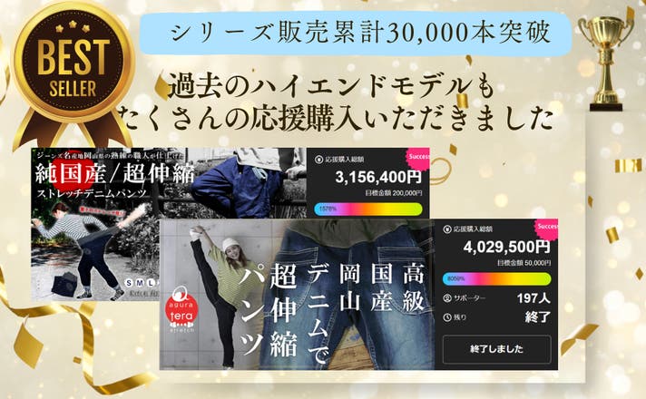 「Makuake(マクアケ)」は、実行者の想いを応援購入によって実現するアタラシイものやサービスのプラットフォームです。このページは、 ファッションカテゴリの 「見た目はきちんと、はき心地は楽ちん。岡山デニム進化系リラックスストレッチデニム」プロジェクト詳細ページです。
