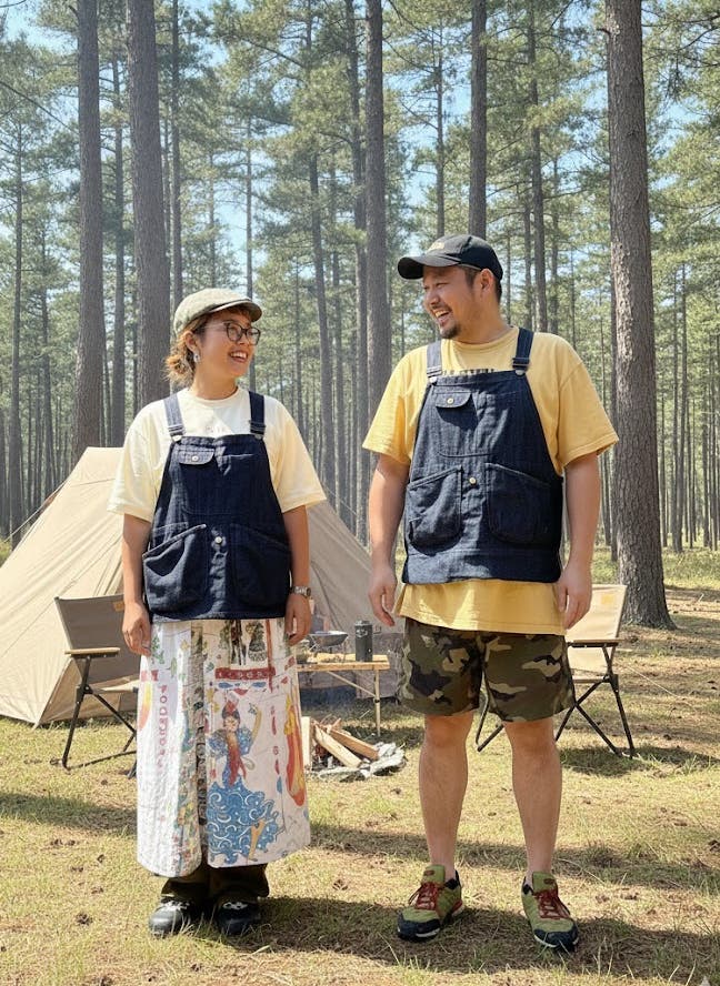 - ベストがエプロンに瞬間変身。 キャンプ、BBQ、DIYなど、汚れを気にせず活躍する2WAY