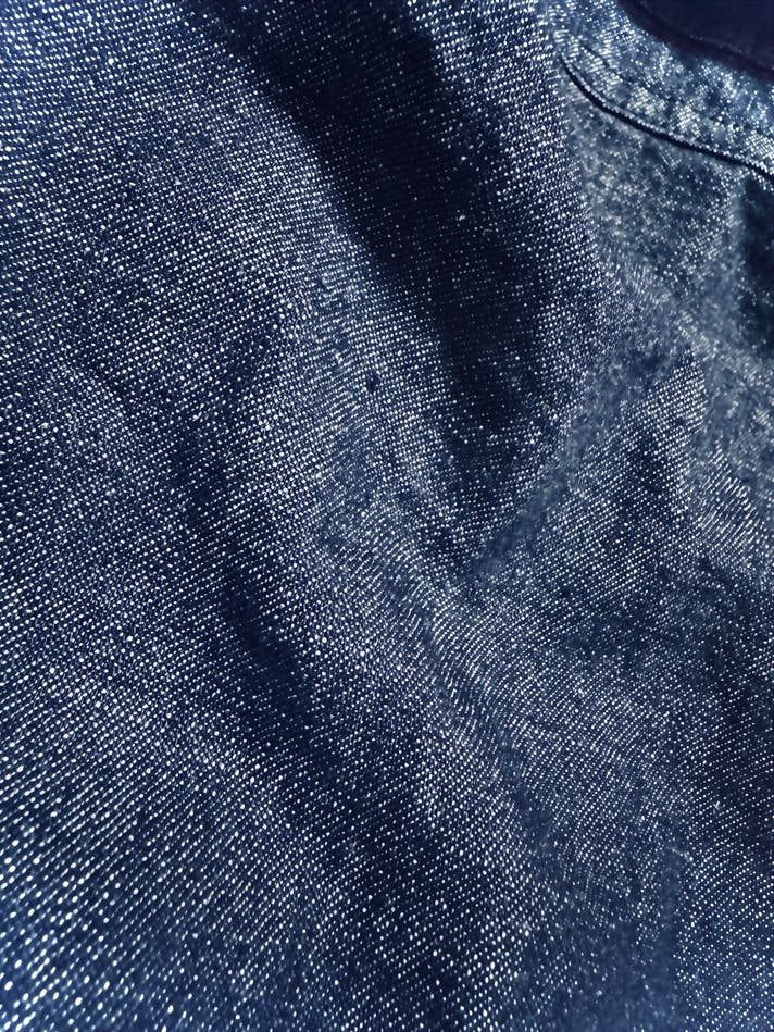 デニム特有の風合いはそのままに、軽快でストレスのない着心地が特徴で、タフに使える素材です。