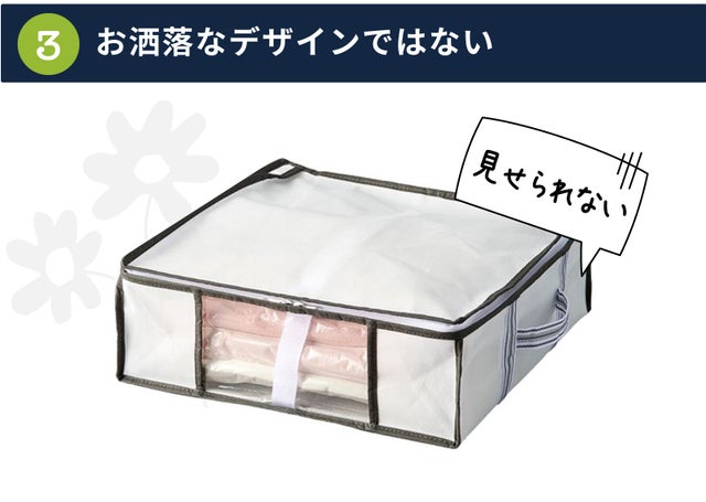 収納道具は、煩雑な衣類や寝具が片づけばいいわけではなく、また、片づけは時間をかけて頑張るものでもありません。