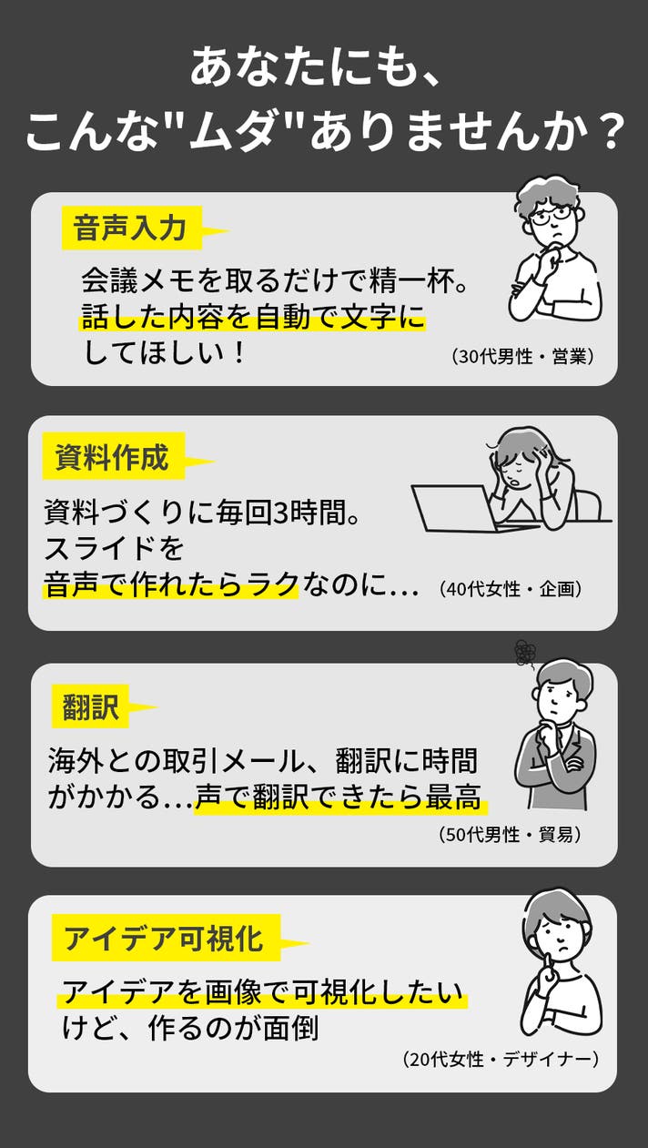 - 会議中にメモを取らなくてもOK!話しかけるだけで翻訳・議事録・構成案まで一括処理できる!