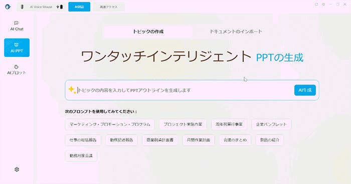 - 製品本体左側にある「マイクマーク」を1クリックまたは長押しし、音声を文字起こししたデータを貼り付け、またはアプリ内「AI対話」AIチャットに直接文字起こし