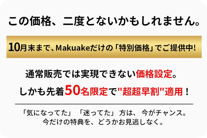 本プロジェクトはアンコールプロジェクト※です。 ※アンコールプロジェクトとは、過去実施したプロジェクトが好評だった場合において、 プロジェクト終了後から一般販売までに再び実施するプロジェクトを言います。