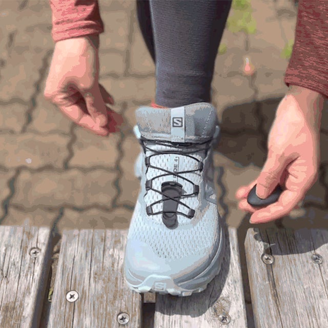 靴紐に上下のパーツを取り付けるだけ。取り付けには10秒もかかりません。