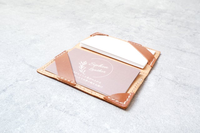 常にカバンに忍ばせて、よく手にする名刺入れだからこそ、牛本革の中でも撥水性がよく汚れに強い革素材を選びました。