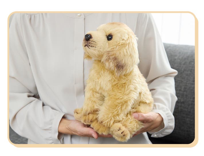 まるで本物のゴールデン・レトリーバーのような色艶の柔らかな毛並みで、つい、膝の上においていつまでも撫でていたくなっちゃいます。