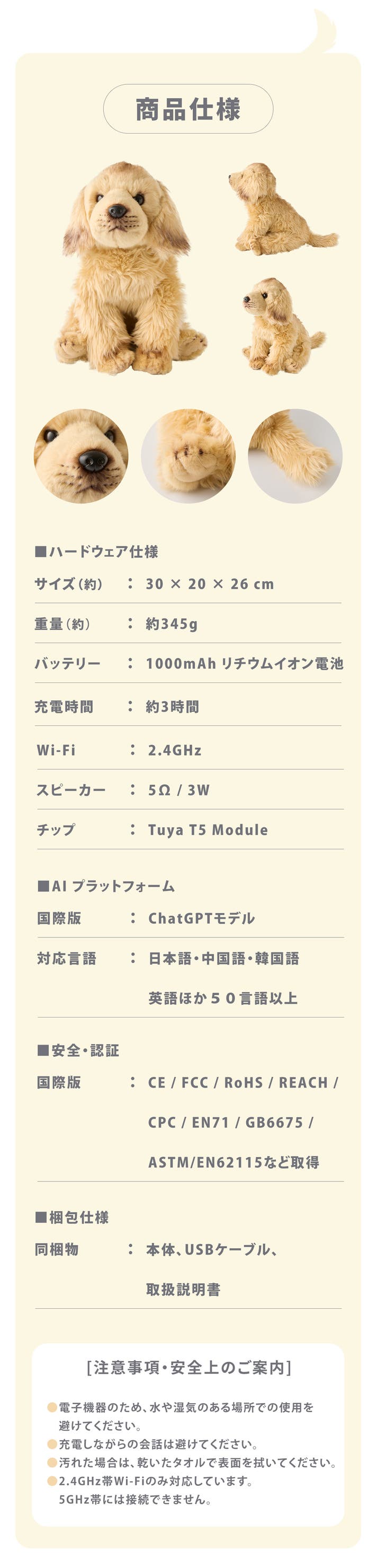 そんな気持ちを大切にしたい。「AIDog」は、話しかければ優しく返してくれる小さな家族です。孤独を減らし、心に寄り添う未来のぬいぐるみ。皆さまの温かいご応援を、どうぞよろしくお願いいたします。
