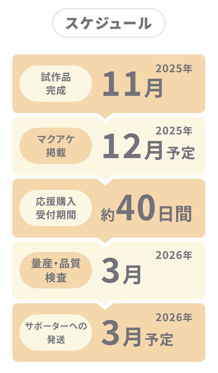 ※皆様の応援購入により量産効率が向上した場合、正規販売価格が販売予定価格より下がる可能性もございます。