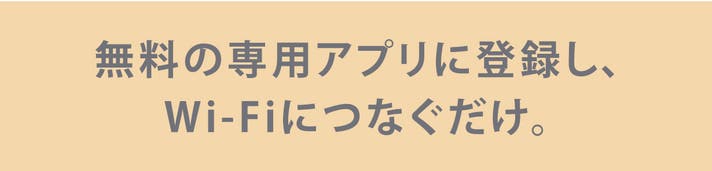 - 【届いたその日から】誰でも簡単。スマホから無料の専用アプリに登録して、Wi-Fiにつなぐだけ