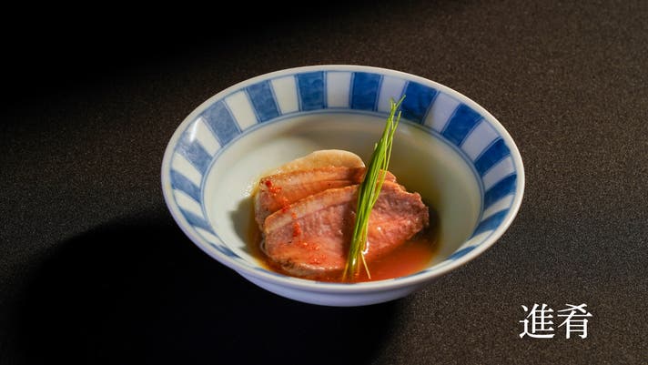 主役の登場を前に、料理人の粋が光る鴨の一皿。今宵の季節でしか出逢えない味に、思わずお酒が進む。